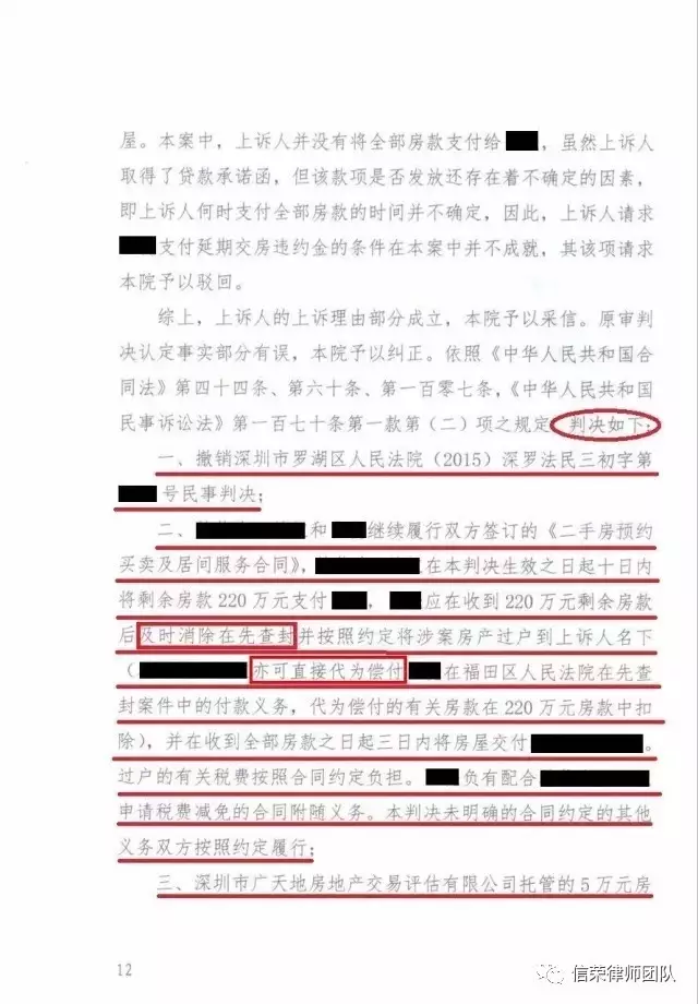 本团队代理案件,深圳市中级人民法院终审判决,确认本团队律师观点正确,撤销罗法一审判决,改判业主继续履行合同。